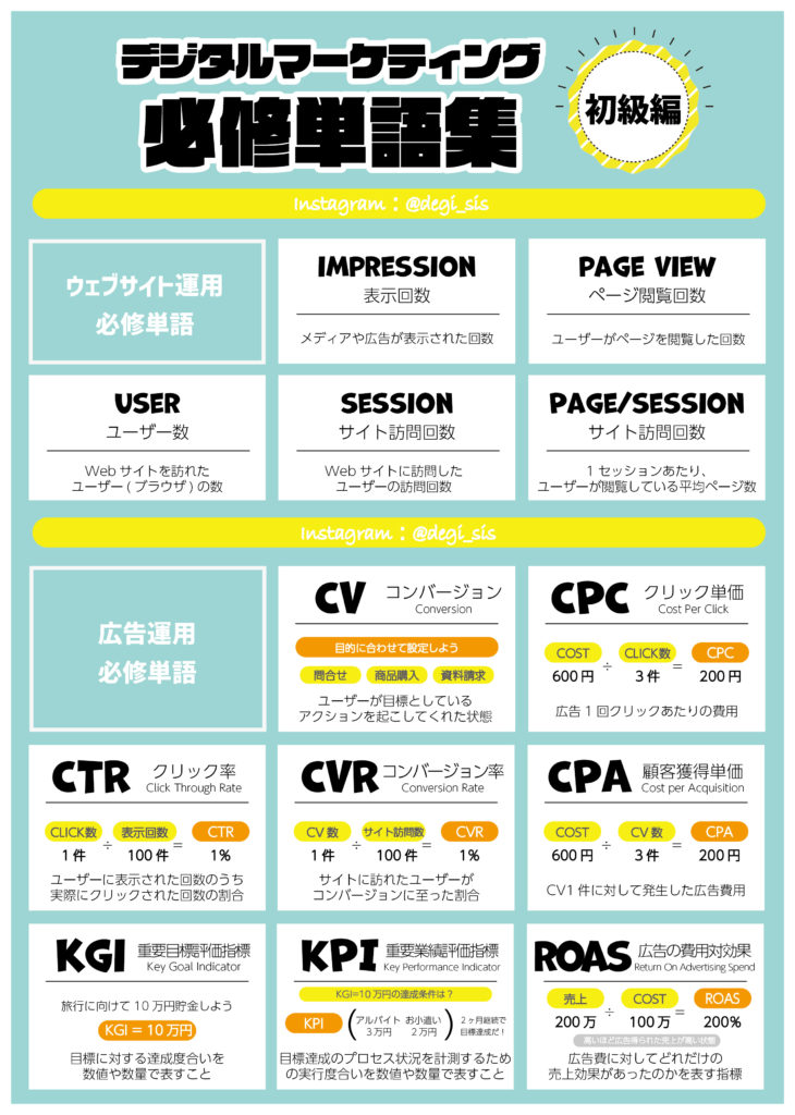 資料ダウンロードTwitterFacebookLINEコピー2022.11.142022.11.08目次デジタルマーケティング入門編デジタルマーケティング必修単語集ウェブサイトデータ分析GoogleAnalyticsデジタルマーケティング入門編デジタルマーケティング必修単語集【デスクで使えるA4サイズ】ウェブサイト運用から広告運用までの必須単語を集めました!Downloadウェブサイトデータ分析GoogleAnalytics【デスクで使えるA4サイズ】GoogleAnalyticsの説明から、基本単語までバッチリ!Download